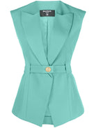 Balmain Sleeveless Belted Waist Jacket Green