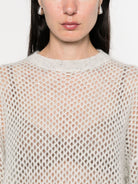Elevate your style with this subtly shimmering, open-knit sweater.