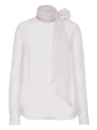 Elevate your wardrobe with this elegant and semi-sheer silk blouse.