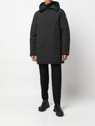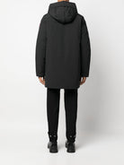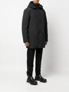 Stay warm and stylish in this long parka coat, perfect for cold weather conditions.