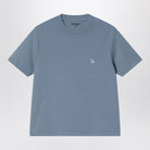 Carhartt WIP T-shirt in angelite blue interlock cotton knit, featuring short sleeves, slim fit, ribbed crew neck, and tone-on-tone logo embroidery on the chest. Size and Fit - Model wears size X S Model measurements: Height: 178 cm Chest: 83 cm Waist: 63 cm Hips: 91 cm