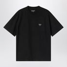 Carhartt WIP black organic cotton lightweight jersey T-shirt, featuring oversized fit, embroidered heart-shaped insert on the chest, ribbed crew neck, short sleeves, and Loose fit. Size and Fit - Model wears size S Model measurements: Height: 178 cm Chest: 89 cm Waist: 62 cm Hips: 88 cm