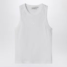 Carhartt WIP ribbed tank top made of medium weight elasticized cotton yarn in white, featuring a crossover on the back, tone-on-tone front logo embroidery, and a slim fit. Size and Fit - Model wears size S Model measurements: Height: 178 cm Chest: 89 cm Waist: 62 cm Hips: 88 cm