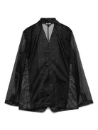 This semi-sheer chiffon blazer offers a sophisticated, lightweight layer.