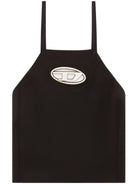 This black halterneck top features cut-out detailing and a sleek, modern design.
