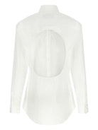 This crisp white cotton shirt features a unique back cutout for a modern twist.