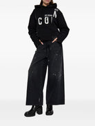 This black cropped hoodie features a panelled design and logo print for a stylish look.