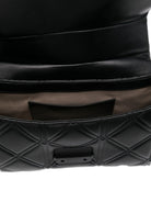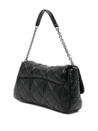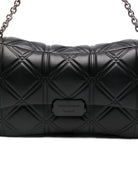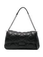 This black shoulder bag features a quilted design and chain-link detailing for a stylish look.