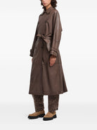 This stylish coat features a belted waist and double-breasted closure for a flattering silhouette.