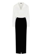This bicolor long dress offers a sophisticated and stylish look for any occasion.