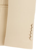 This wool blazer features elegant silk satin lapels for a touch of luxury.