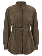 Elevate your wardrobe with this luxurious suede shirt, featuring subtle logo detailing.