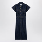 This organic denim midi dress offers a blend of style and comfort for everyday wear.