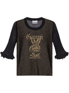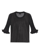 This classic sweater features ruffle cuffs for a touch of playful elegance.