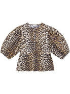 Ganni Leopard Print Cotton Top Brown