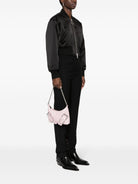This blush pink shoulder bag is crafted from luxurious calf leather with silver-tone hardware.