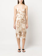 Gold Hawk Floral Print Silk Dress