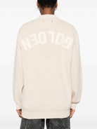 This cream cardigan features a ribbed knit and patch pockets for a classic look.