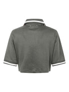 This cropped polo shirt offers a blend of classic style and modern fit.