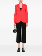 This bright red jacket offers a comfortable and stylish fit for any occasion.
