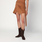 This caramel-colored cotton skirt features a flattering wrap design and asymmetrical hem for chic style.