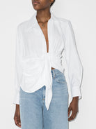 Elevate your wardrobe with this chic, draped long-sleeve shirt.