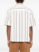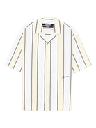 This stylish shirt features vertical stripes and an embroidered logo for a unique look.