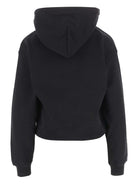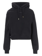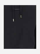 Stay stylishly comfortable in this black cotton hoodie with subtle logo detail.