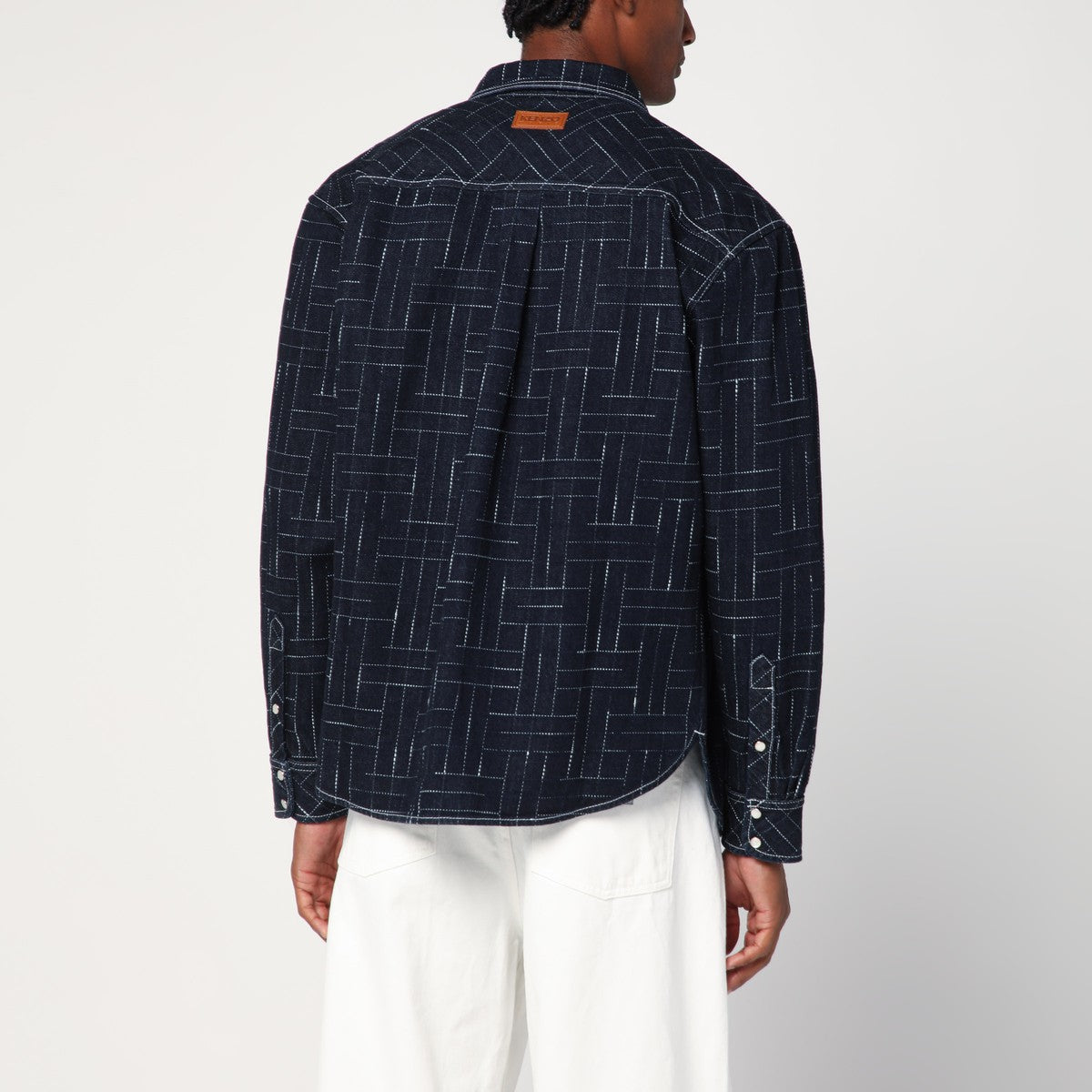 Elevate your style with this blue denim shirt featuring an all-over Kenzo weave.