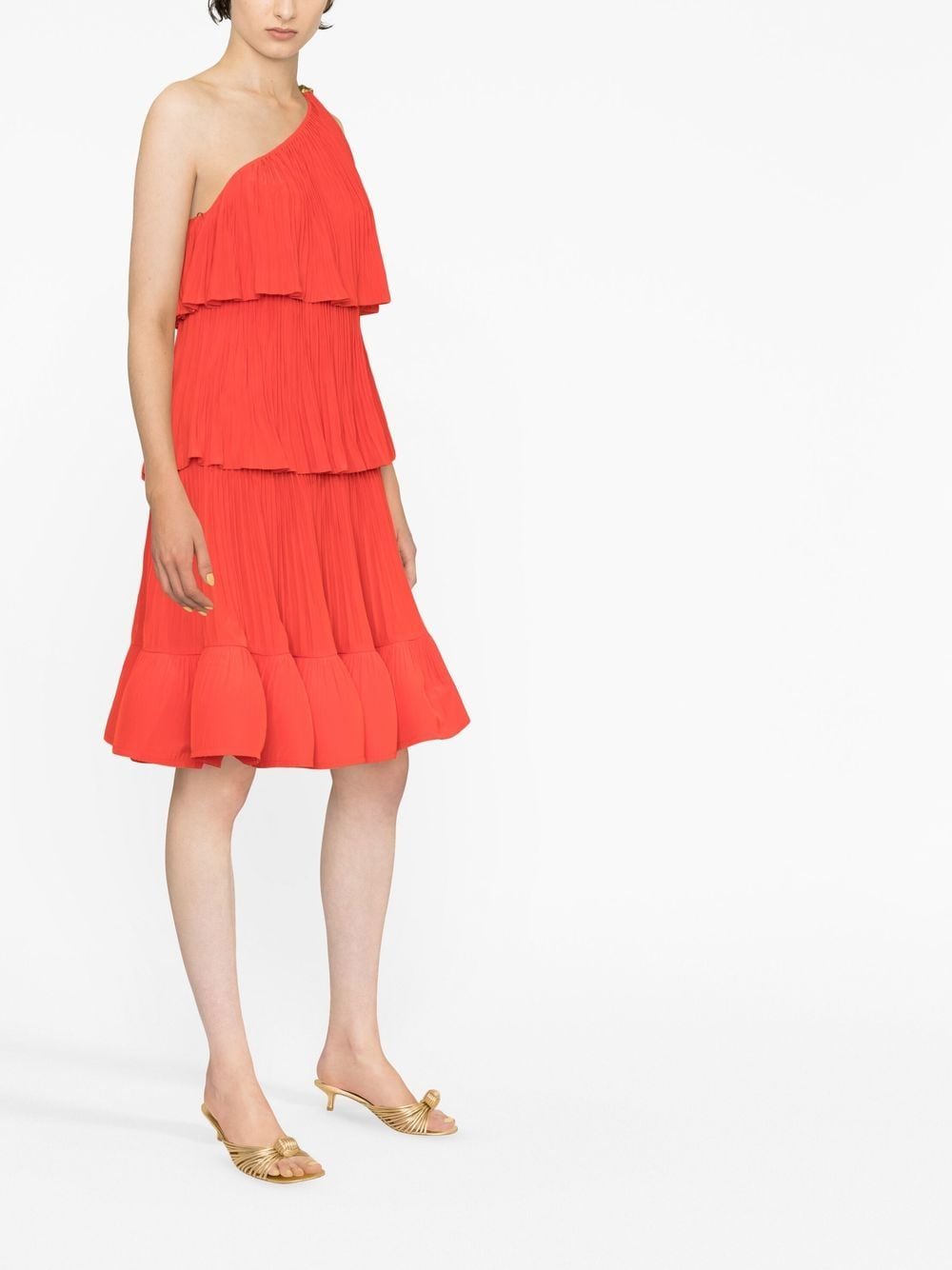Make a vibrant statement in this stunning, pleated one-shoulder dress.