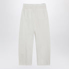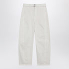 These cream trousers offer a clean, sophisticated look with practical design details.