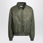 Maison Margiela khaki green nylon jacket, featuring front zip closure, ribbed corduroy collar, ribbed knit trims, two side pockets, and Four Stitches on the back. Size and Fit - Model wears size 50 IT Model measurements: Height: 189 cm Chest: 104 cm Waist: 78 cm Hips: 95 cm