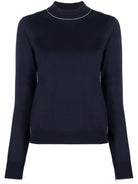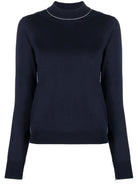 Stay warm and stylish in this classic wool jumper with subtle frayed detailing.