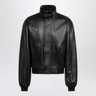 Balenciaga Black Leather Zip-Up Bomber Jacket
