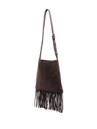 This brown shoulder bag features iconic VLogo Signature and fringe detailing for a stylish look.