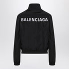 This Balenciaga bomber jacket offers a sleek, stylish look with iconic logo detailing.