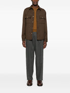 • Classic Shirt Jacket Design – Versatile style with a point collar and buttoned cuffs.