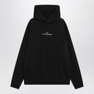 This black cotton hoodie features a reversed logo for a unique, stylish look.