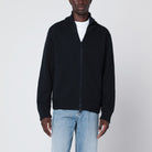 This navy wool cardigan is a stylish and comfortable layering piece.