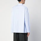 This light blue striped shirt offers a blend of classic style and subtle branding.