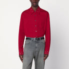 This classic red cotton shirt offers timeless style and comfortable wear.