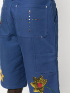 Elevate your casual look with these stylish sequin-embellished blue shorts.
