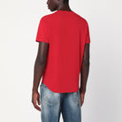 This red cotton T-shirt features a contrasting black logo print on the front.