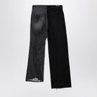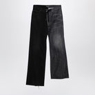 These unique jeans combine Italian and Japanese denim for a stylish, asymmetrical look.