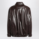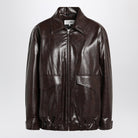 MM6 Maison Margiela jacket in burgundy eco-leather, characterized by a classic collar, zip closure, front pockets with flap, cuffs with snap button, and elasticated hem.