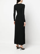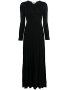 This elegant midi dress features a flattering V-neck and sophisticated pleat detailing.