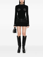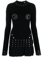 Make a statement with this eye-catching dress featuring eyelet embellishments and a flattering silhouette.