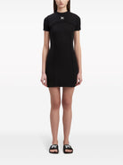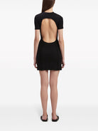 This black dress features a fine ribbed design and an open back for a stylish look.