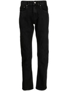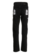 Elevate your streetwear with these classic black denim jeans featuring unique graphic details.