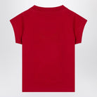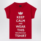 This red Balenciaga t-shirt features a bold logo for a stylish, modern look.